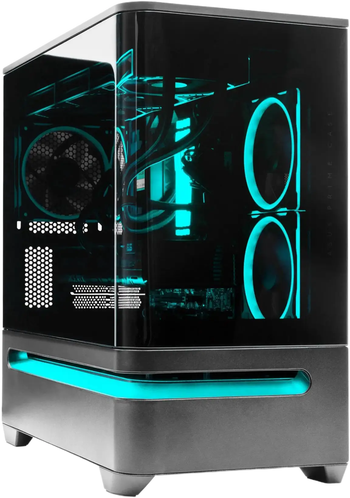 The ASUS Prime AP202 is a panoramic Micro ATX case built for clean showcase builds that still prioritize cooling. Its curved tempered glass wraps from the front to the side for a wide view of your components, making it a strong fit for modern RGB and high end hardware layouts.
